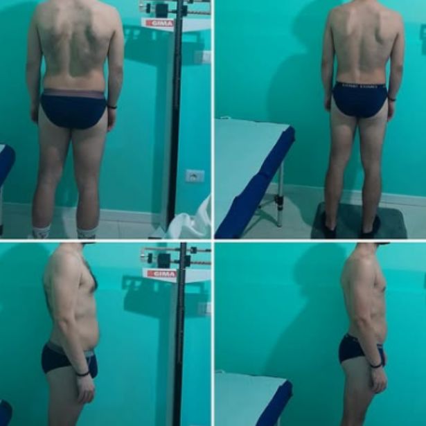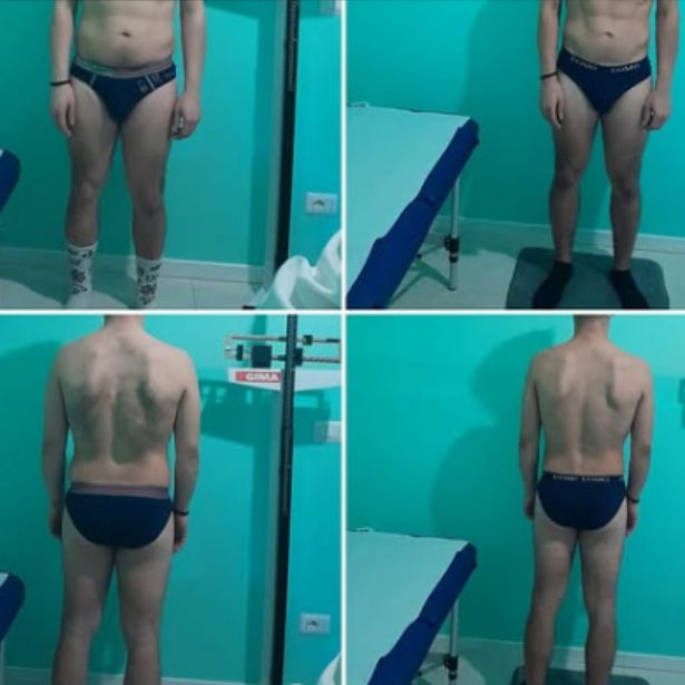 Nelle foto a sinistra il soggetto presentava un peso prossimo ai 78 kg con una percentuale di massa grassa del 18.5 %.